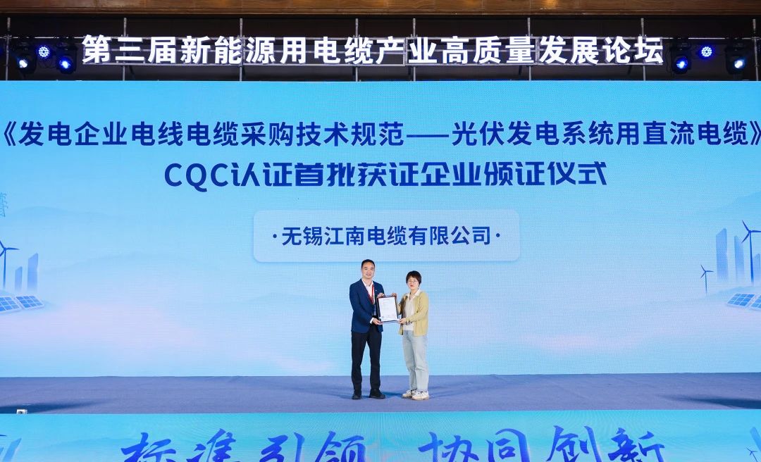 江南電纜這一系列產(chǎn)品已成為標準引領下的新能源電纜典范,首批獲證彰顯了江南電纜在新能源電纜領域的硬核實力,充分發(fā)揮了國內相關標準和檢測認證在新能源產(chǎn)業(yè)質量基礎設施方面的重要作用。