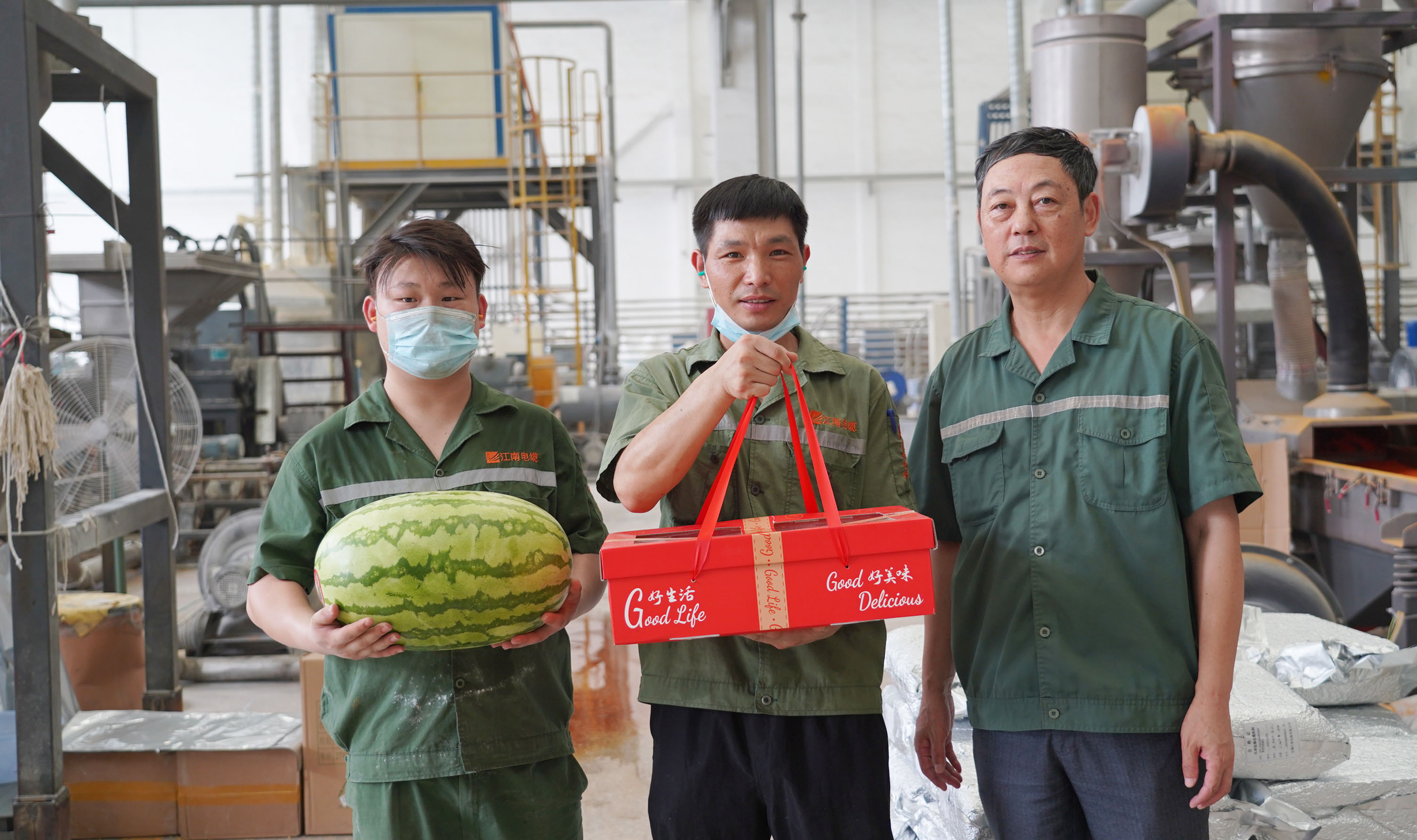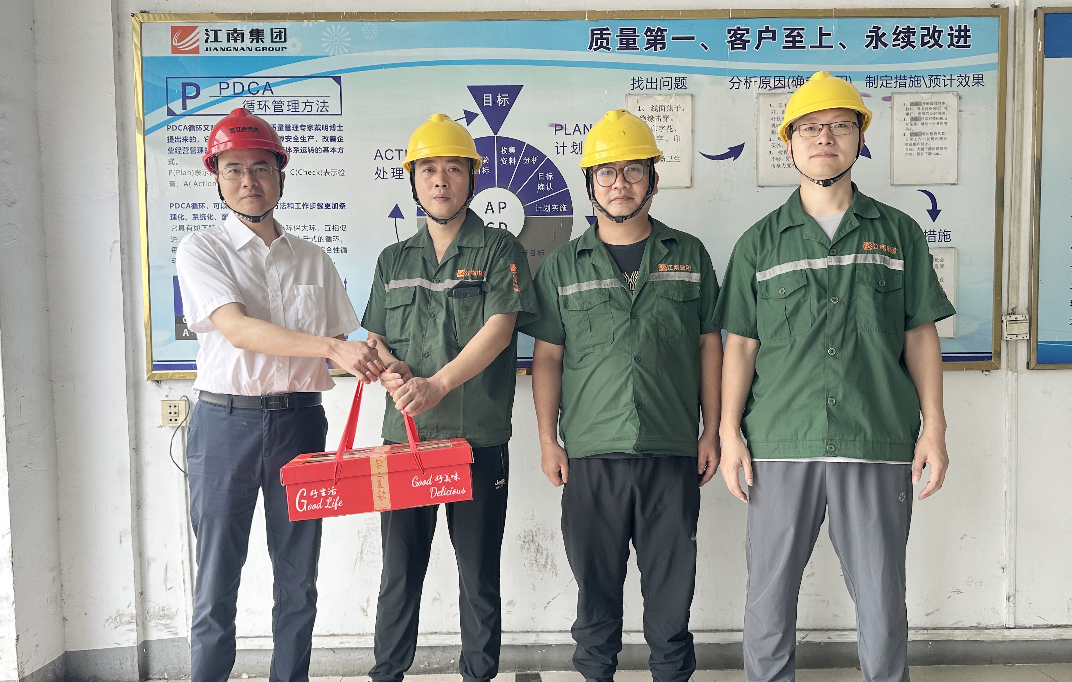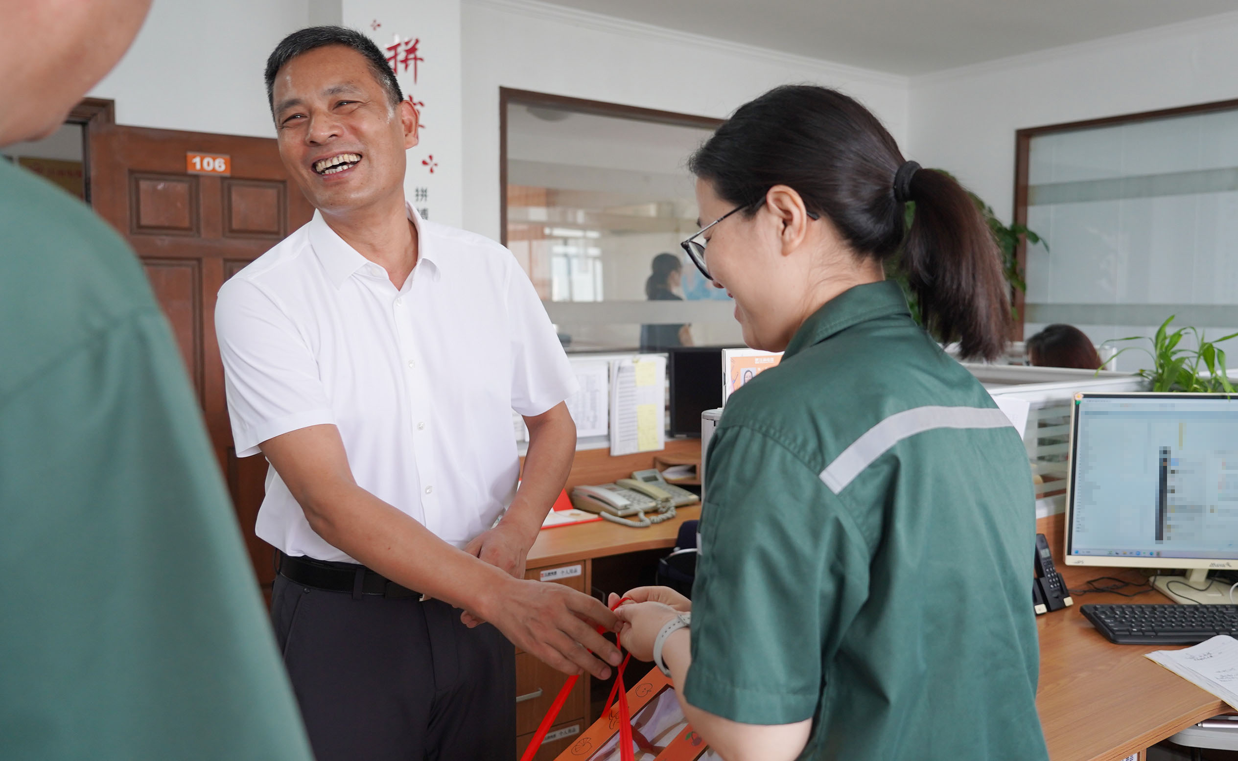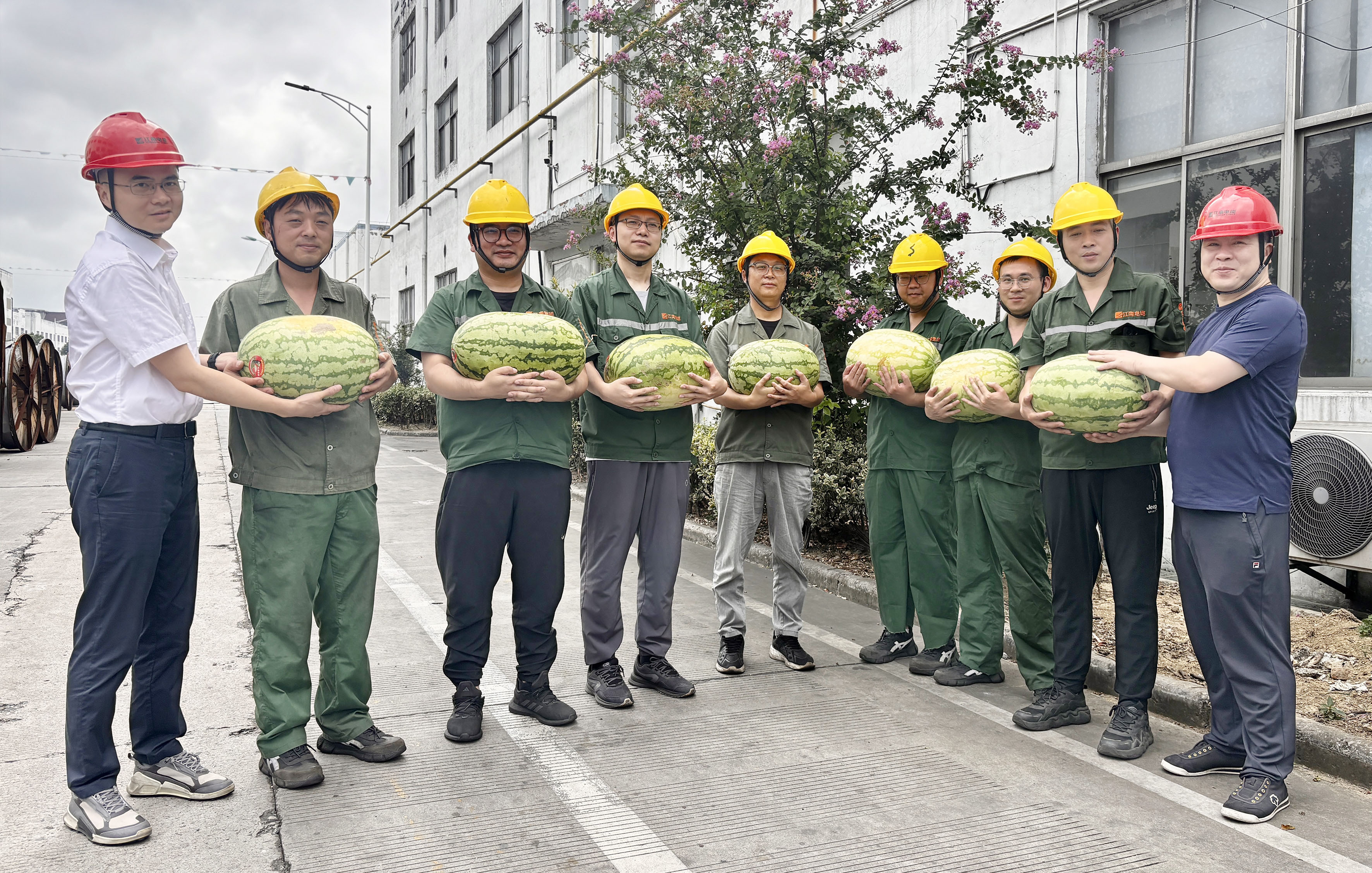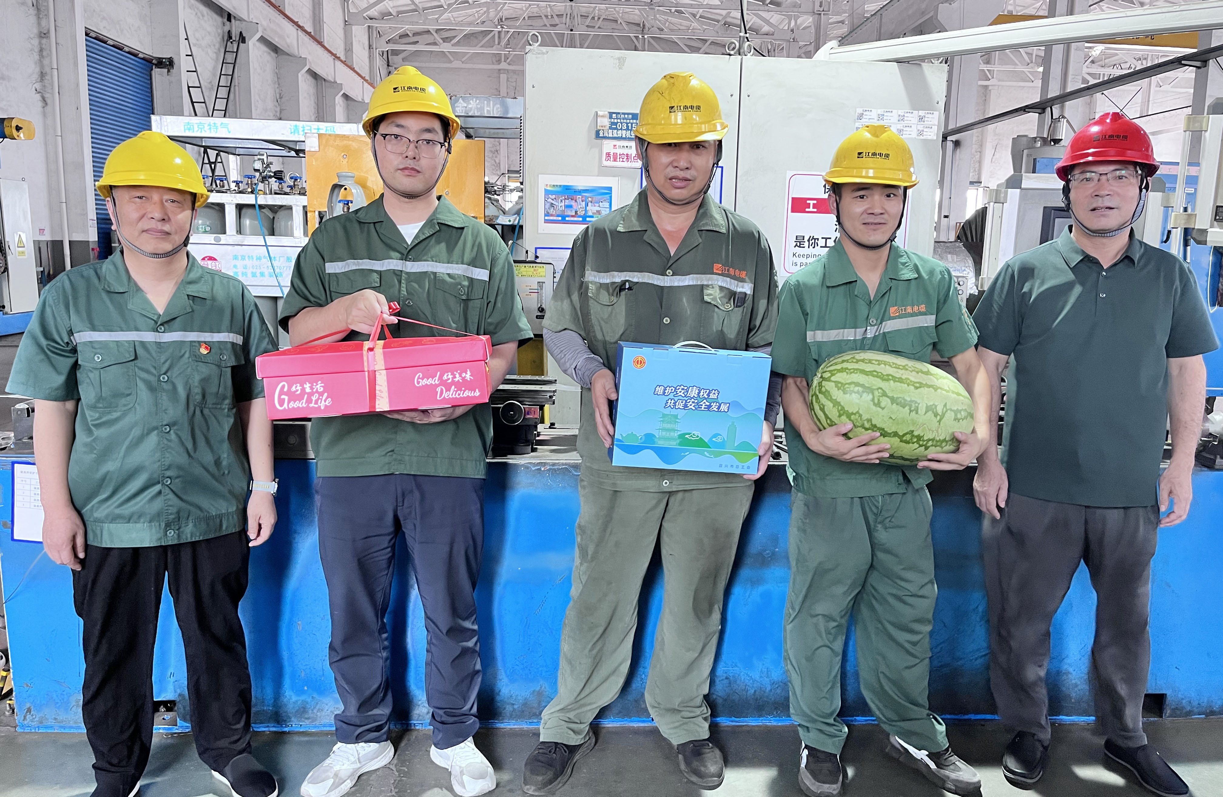 夏日炎炎,暑氣蒸騰。為切實(shí)做好高溫時(shí)節(jié)安全生產(chǎn)和員工關(guān)愛工作,近日,公司董事長儲(chǔ)輝、運(yùn)營總經(jīng)理蔣君西帶領(lǐng)領(lǐng)導(dǎo)班子成員深入車間一線與后勤部門,開展“情系員工 夏送清涼”慰問活動(dòng),為不畏酷暑、堅(jiān)守崗位、辛勤奉獻(xiàn)的員工送上關(guān)懷與問候。