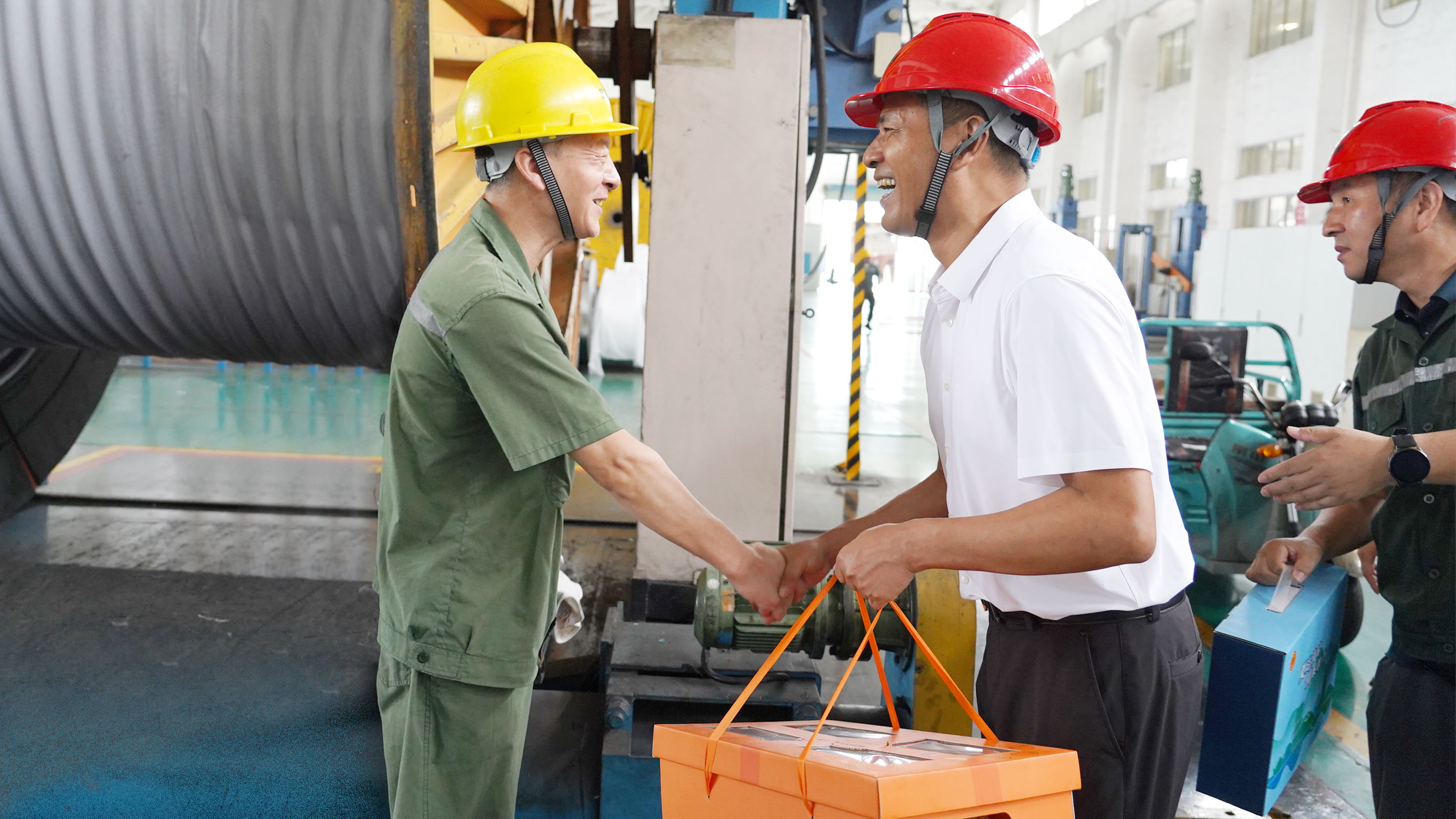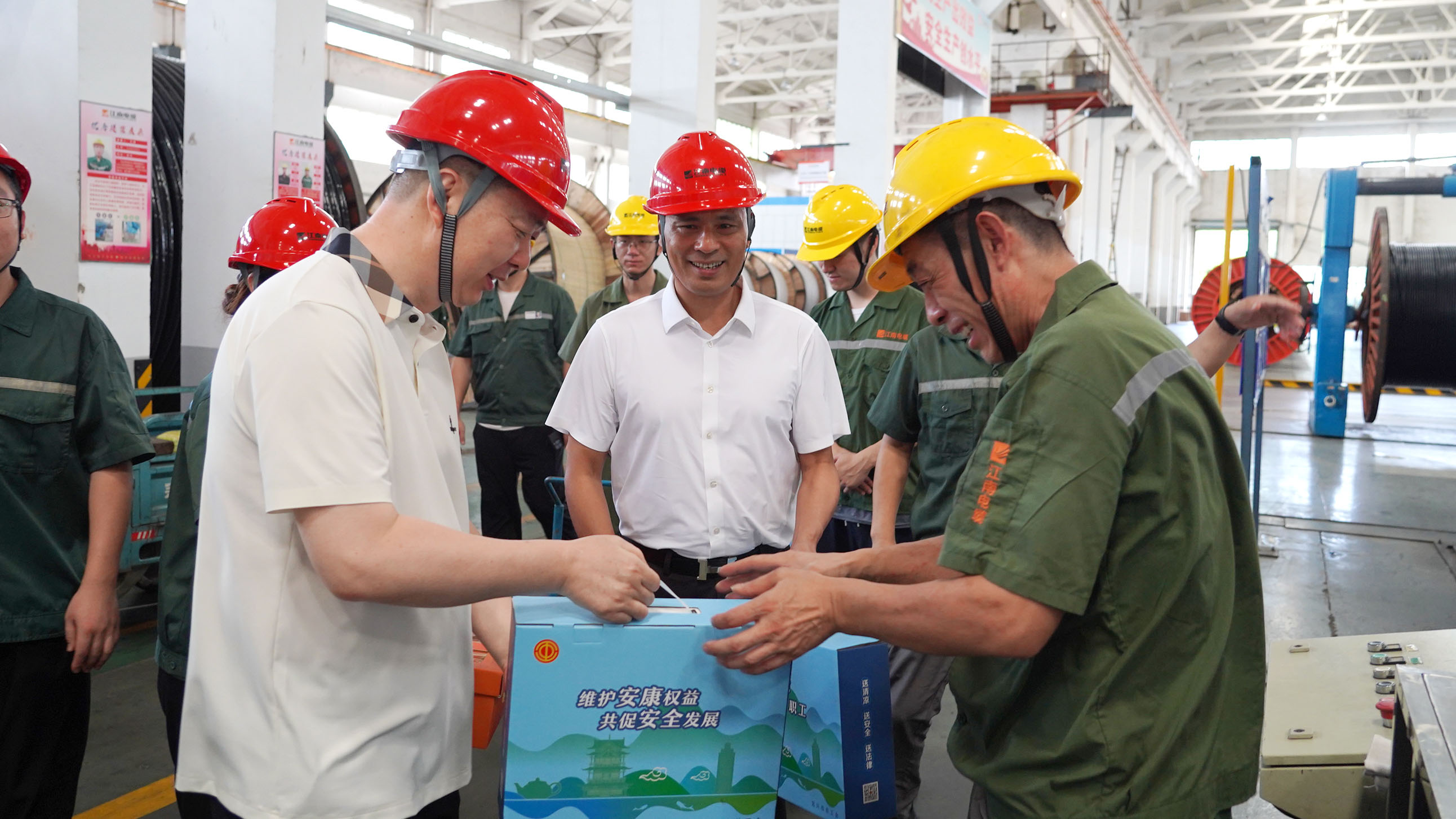 副總經(jīng)理韓偉、副總經(jīng)理史明強(qiáng)赴防火鋁線電纜分廠七車間送清涼
