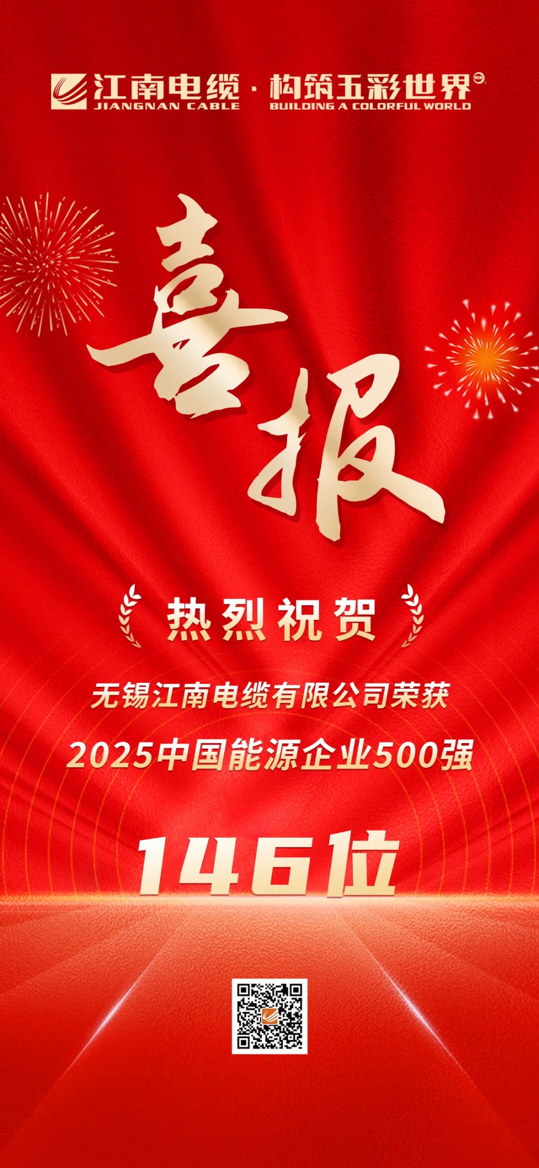 【喜報】江南電纜榮獲2025中國能源企業(yè)500強